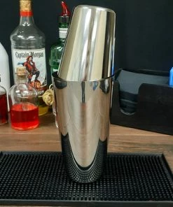 Deciding on the “correct” cheater tin is a matter of familiarity and opinion, and you may become comfortable with any type you choose. If your concern is spill-free ease of use, a 3-piece shaker may be your solution. For working bar workers who might be looking for speed, a two piece system of capping a smaller tin or mixing glass is common, as is simply using a single tin for stirring and an ice strainer while pouring. Two piece shakers can come as a set, and oftentimes appearance is a large consideration. If you’re looking for a bit of personality and ease of grip, you may want to check out the vinyl-coated shaker. Picking metal or plastic is another consideration when purchasing limits and showmanship for both pros and beginners are key.