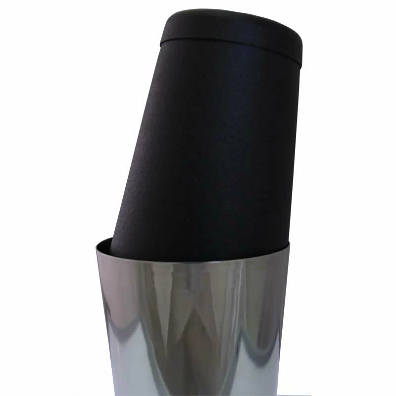 Constructed from a high quality stainless steel material, this textured black coating offers not only a professional look to your bar setting, but also a superior grip and functionality. The slight texture provides a secure grip while in use. This 18 ounce black textured cocktail shaker is also available with other matching bar tools such as cocktail strainers, various sized shaker tins and bottle openers!