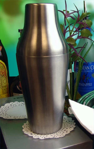 This 2 Piece Parisian (French) Shaker, made with heavy duty Stainless Steel, has a volume of 18oz with an oversized top to allow for better mixing. Works great with a 2 prong or 4 prong strainer. Stands 8 5/8 inches tall.