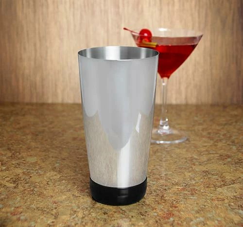 The classic 28oz weighted stainless steel cocktail shaker now comes with “rubber boots”! The extra piece of vinyl grip slips snugly on the bottom of this cocktail shaker (or any 28oz weighted shaker) to prevent slippage and add an extra bit of protection. It’s great for flair bartenders who don’t want to tape up the bottoms of their shakers and can also serve to protect delicate surfaces at home.