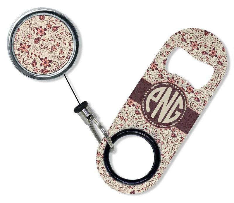 Clip your bottle opener practically anywhere for quick, convenient access… and do it with style! Showcasing a full color elegant vintage design, we have tastefully decorated our trendy mini bottle opener to match this quality retractable reel. Clip it to your belt, pants, pocket, purse or anywhere else you can think it would come in useful.