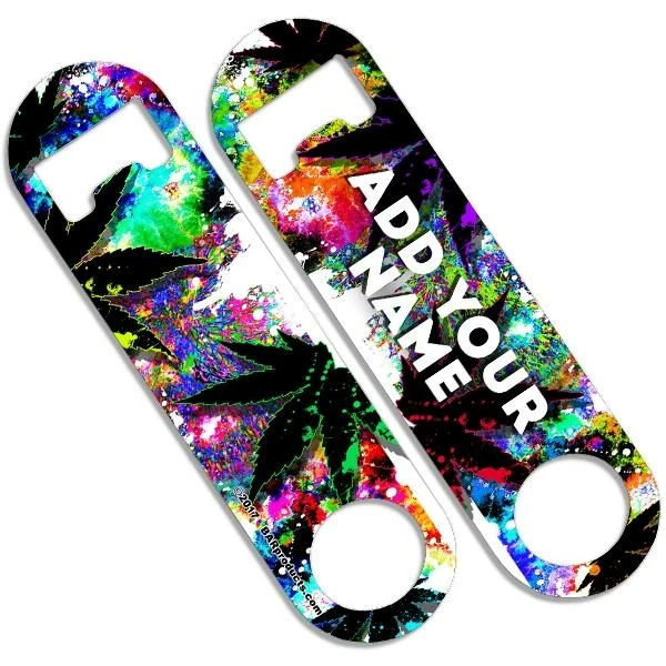 If you are someone that is a fan of our mini style speed openers then you are sure to love this Skinny Mini Bottle Opener! Choose from a large selection of fun coloful designs, such as this “Colorful Stoner” design template that can be customized with your very own name! Simply type in your text and our design team will do the rest!