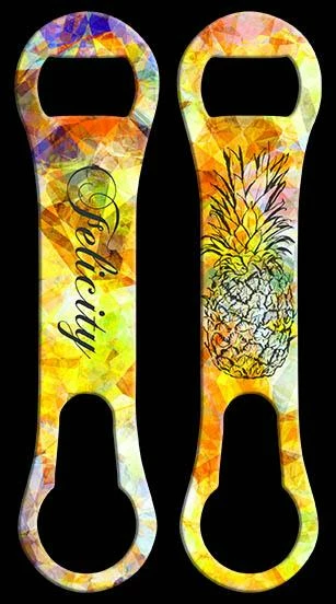 When it comes to customizing your very own bottle openers, our “Add Your Name” feature is perfect. Simply type in your text and we do the rest. It’s that easy! Among many other cool, trendy templates, this tribal pineapple is designed with the boho chick in mind. Simply type in any name and have a completely customized bottle opener for yourself, or to hand out as a gift to your favorite bartender.