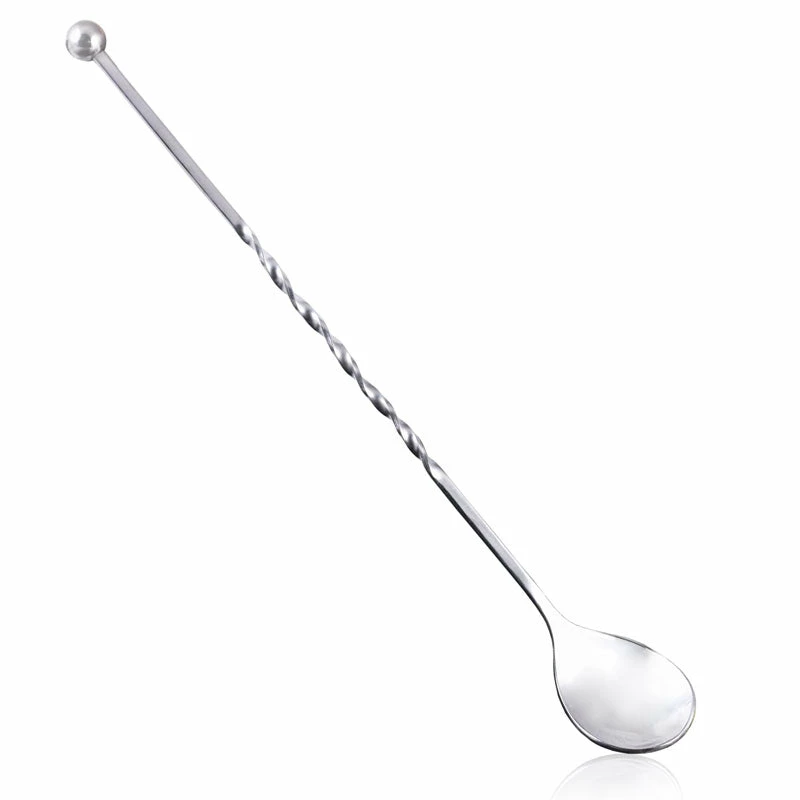 The ball tip and decorative twisted shaft make it easy to keep a hold of this spoon, making it quick and easy to stir and mix. This bar spoon is made from heavy duty stainless steel measures 11 inches in length.