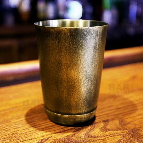 With the craft cocktail and professional bartending movements in full swing this rustic look is becoming quite popular. The BarConic® Antique Gold Coated 16oz Shaker features a antique weathered gold finish. This tin is made of strong stainless steel for a curable and long lasting product. 16oz shaker tins are commonly referred to as a “cheater tins” as they can be used with larger shakers to shake cocktails. This shaker is perfect for the professional bartender or mixologist looking to heighten the quality of the barware used to create their craft cocktails. We also offer matching antique gold bar tools including strainers, openers and jiggers.