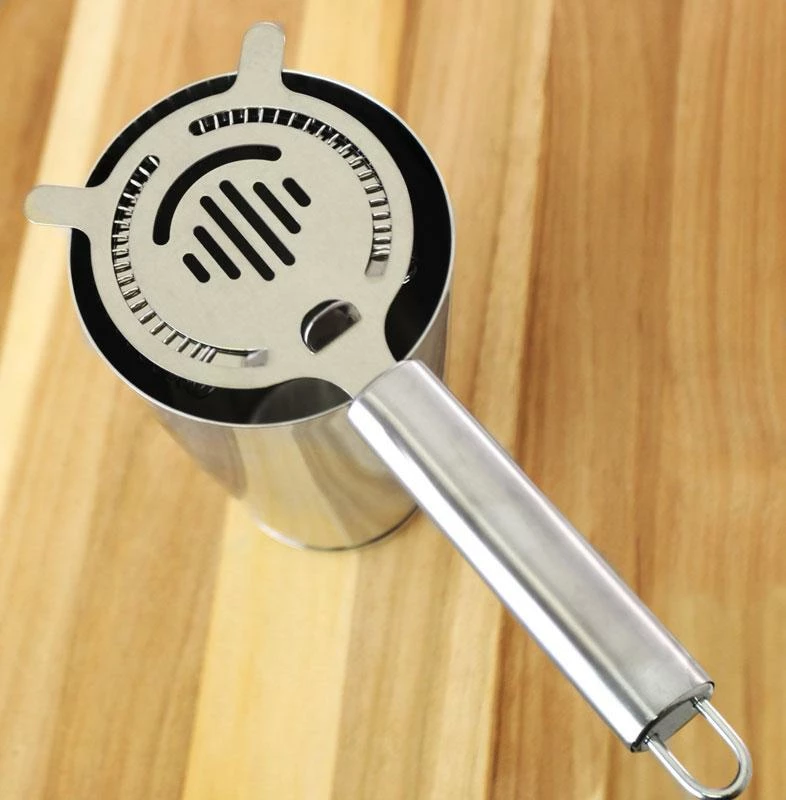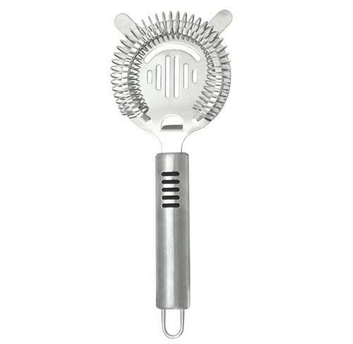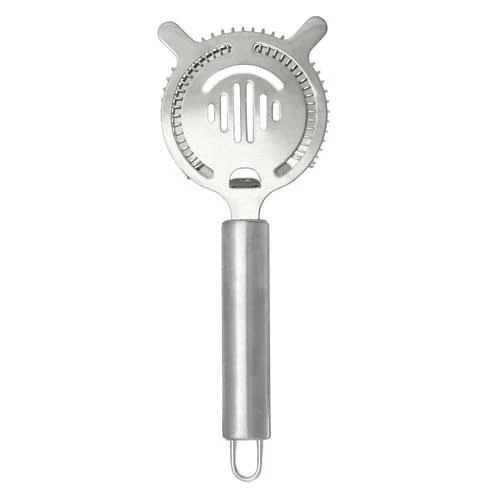 The BarConic® 2 Prong Stainless Steel Handled Cocktail Strainer is an extremely high quality cocktail strainer that can be used for professional or home bars. The design of this strainer makes it easy for any bartender to use. The long handle with rubber grips will keep the tool from slipping while you are pouring cocktails. It is made of durable stainless steel, and has a hook on the end for storage.