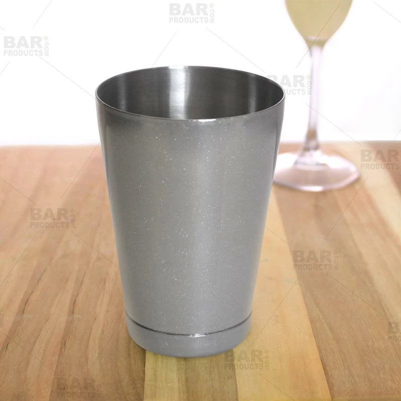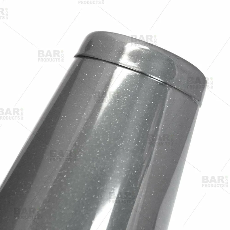 This BarConic® 18oz. Cocktail Shaker Tin is a huge asset to any set of bartending tools. The 18oz. capacity makes it ideal for mixing all types of cocktails. The added room allows for additional space during the mixing process, letting you combine the ingredients more efficiently. A high quality shaker tin is arguably the most important tool behind the bar; it is an essential component when it comes to crafting any cocktail. This shaker tin is covered in our beautiful shimmering silver finish giving it a very fashionable look. Our unique and classy design gives this shaker tin a chic and sophisticated finish. Constructed from high quality stainless steel, this shaker tin has been optimized for speed and effectiveness. Also available in our great glittering silver finish: a 16 oz shaker, a 28 oz. shaker, a strainer, a speed opener, and a V-Rod® bottle opener. All of these great products allow you to build your own matching cocktail set. Order this great BarConic® 18oz. Cocktail Shaker today and instantly upgrade the quality of every cocktail you make.