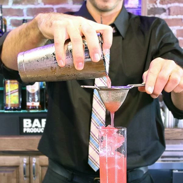 This top-selling BarConic® fine mesh strainer is a must have item throughout the bartending industry for any professional bartender. These mesh strainers come complete with a sleek and stylish polished rim and handle that gives it a trendy finished look. Fine mesh strainers are the perfect tool to help you double strain and keep your drinks free of any small bits of fruit and ice chips. The shape of these strainers provides a large enough capacity for quick and efficient straining; they strain beverages faster than your typical strainer. A must have tool for anyone with a keen interest in mixology, our mesh strainers fit inside both large and standard mixing glasses. Picking the right strainer is an integral part of creating a proper drink; our stainless steel BarConic® fine mesh strainers ensure a consistently smooth drink every time. The extra tight woven design of this strainer provides a more thorough strain for those cocktails that may contain tiny pieces of debris. The BarConic® fine mesh strainer is the perfect finishing touch for any cocktail and a necessity for any barware collection.