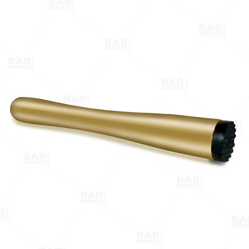 There are several styles of muddlers available, such as flat heads and serrated (such as this one). The serrated tip is used in more aggressive flavor extractions. If you are looking for a high quality, elegant muddling tool at an unbeatable price, then this Gold Plated Muddler from BarConic® is perfect for all of your muddling needs.