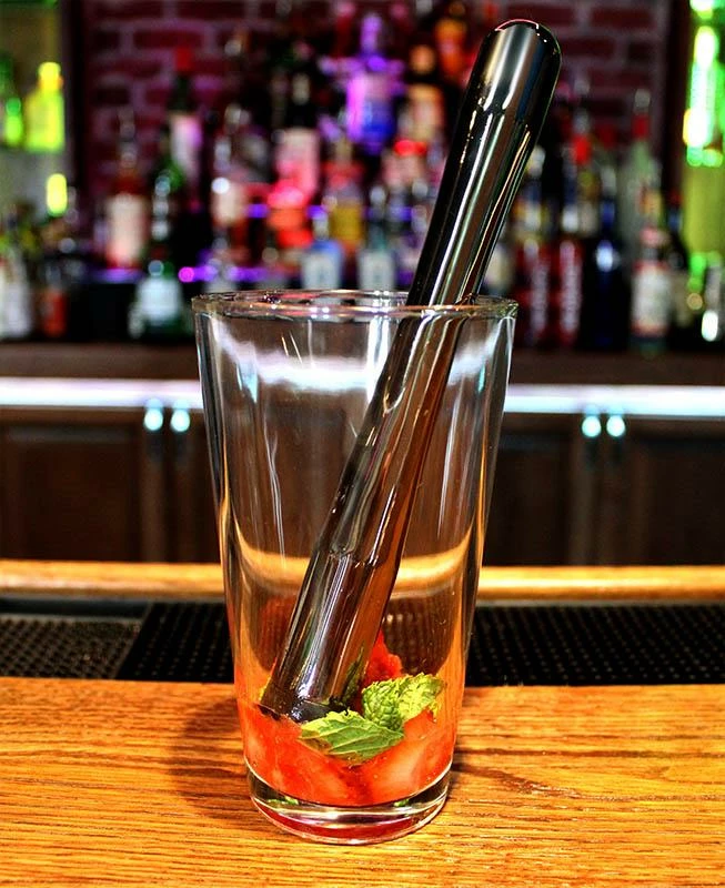 BarConic® Gun Metal Muddler is the perfect high quality slim muddler for the professional bartender or elegant home bar. The black tenderizer head allows you to release extraordinary flavor directly into your cocktail. The ridges of the tenderizer head are particularly useful for breaking down fruits but also helpful when making a traditional mojito. The stunning gun metal handle measures 8 inches high, meant to muddle in tall glasses. The weighted feel of this slim bar tool makes it an exceptional addition to any home or professional bar.