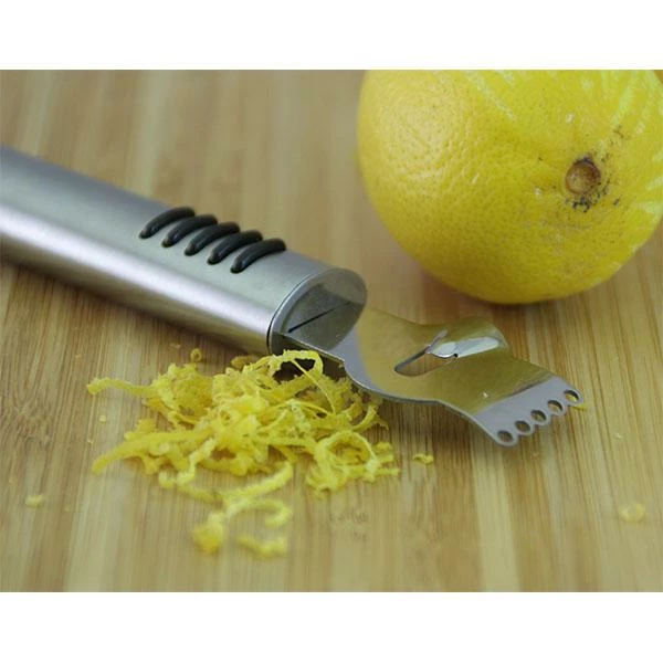 BarConic® brings you another high quality tool for the kitchen or bar. The BarConic® Lemon Zester – Stripper Stainless/Black is an easy to use zesting tool that is ideal for lemons, limes, or oranges. It is made of high quality Stainless Steel and features black plastic ridges that keep your fingers from slipping. Add a little color to your cocktails with a thin twists of lemon or lime.