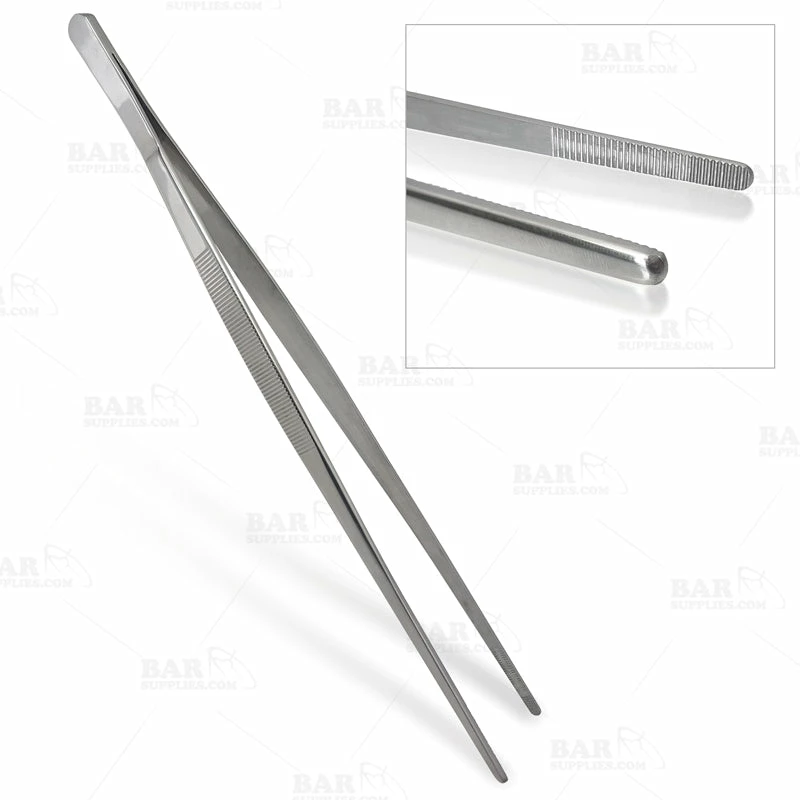The BarConic® Long Garnish Tongs are the perfect way to pick and garnish quality craft cocktails! The unique long plating tool can be used in the bar or kitchen to pick, grip and garnish. Made of quality grade stainless steel, the tongs feature teeth and curved edges that provide a secure grip on even the smallest food or garnish.