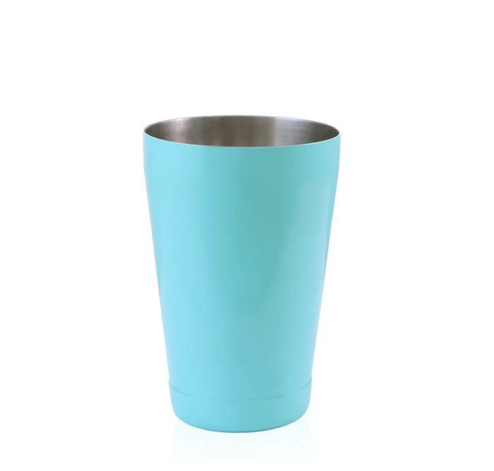 Constructed from a high quality stainless steel material, this unique SeaFoam Blue coating showcases a fun edge to your bartending ammo. This 18 ounce SeaFoam Blue cocktail shaker is also available with other matching bar tools such as cocktail strainers, various sized shaker tins and bottle openers!