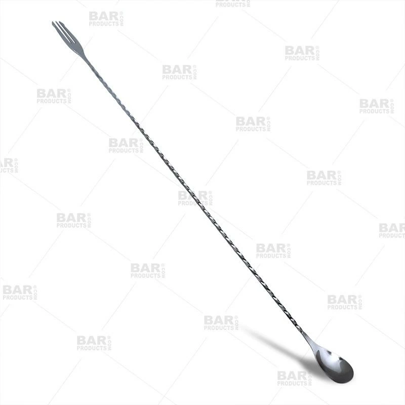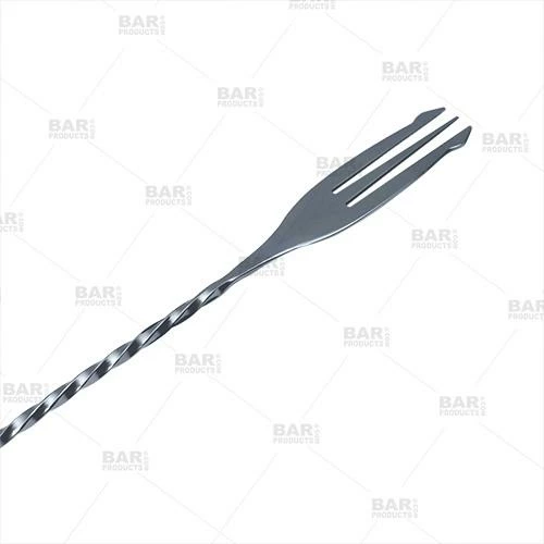 The BarConic® Trident Bar Spoon is available in either 40cm or 50cm lengths making it a great bar tool for busy bartenders to stir their craft cocktails with elegance and speed. Not all drinks need to be shaken and it’s important to know when to stir a cocktail. For those times you need to stir a cocktail instead of shaking not just any spoon will do for the job. This bar spoon in particular is made of strong stainless steel with a twisted stem for better grip and a smoother stir behind the bar. This spoon provides additional functionality featuring a trident forked end perfect for spearing garnishes.