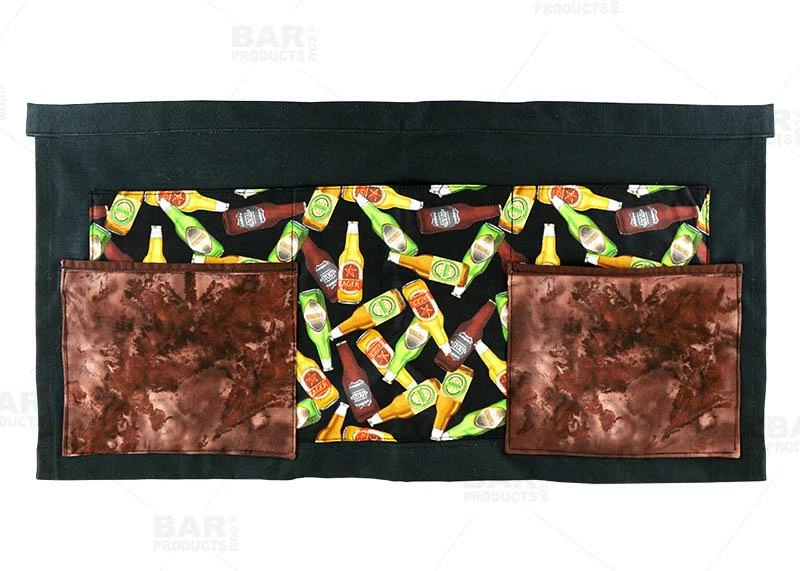 What is not to love about this adorable beer themed apron? Our designer aprons are handcrafted here in the USA and add an undeniably stylish element to your service. Made from 100% cotton, this apron is very durable and extremely high quality. It contains 5 compartments (or pockets) that is suitable for toting and organizing pens, check pads, straws and money during any serving or bartending shift. You are sure to appreciate not only the fashion statement, but also the quality and utility of this beer themed designer apron.