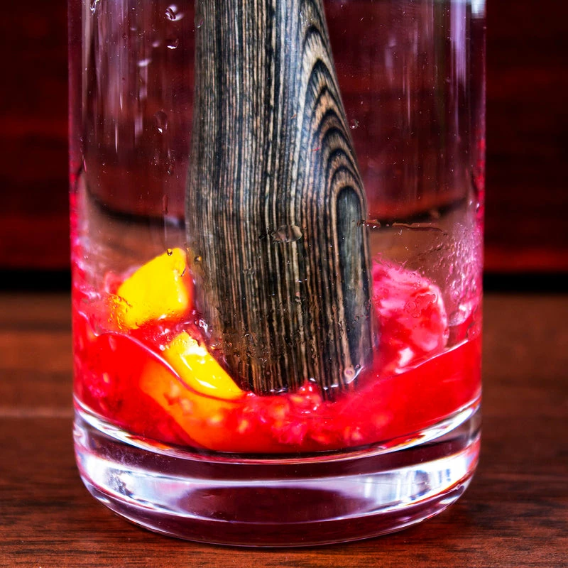 This bamboo muddler Is an essential item that is a must have in your bar. This tool is double sided allowing you to mash or smash your ingredients together. It is made out of laminated wood and is very durable. Its comfortable grip makes muddling ingredients a breeze and is perfect for any tiki tool collection. This tool measures 9.75″ in length.