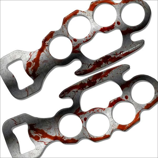 Our Knuckle Buster is a fun bottle opener that works just like a professional speed opener, but it features a cool novelty design. Constructed from a high quality stainless steel material, it has 4 holes where you slip your fingers into and a smooth, slightly angled palm grip. We offer many different, full color designs on these, and they are definitely a bartending tool that will certainly grab everyone’s attention.