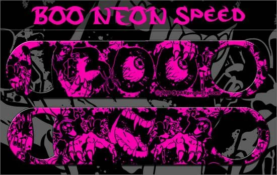 This Halloween opener is so cool you can rock it all year long. Available in three bright neon colors (green, pink, and yellow), these black and neon speed openers feature a scary tattoo-style modern graphic with the word “BOO” sprawled across the side, surrounded by demonic creatures.