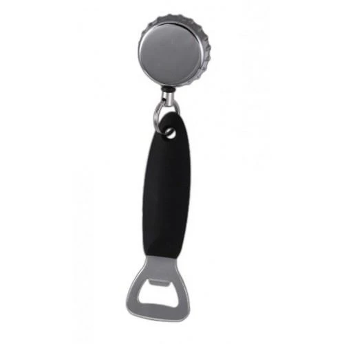 These sturdy shiny metal Retractable Reels have a fun Bottle Cap casing shape and come with a flat Chrome Bottle Opener attachment. Long, 36 inch Black Nylon Cord for versatile use in bar settings and resturants. A nice sturdy reel around the kitchen or for company promotional materials as well.