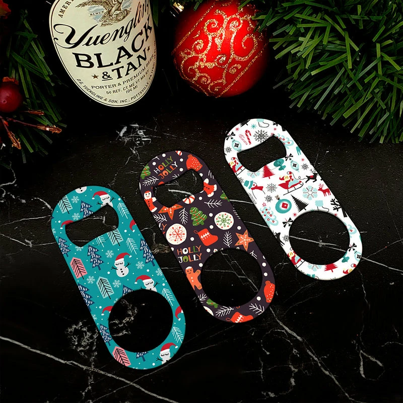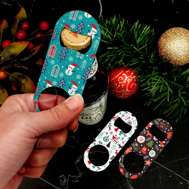 How cute are these Christmas Themed mini bottle openers? They are sure to add the perfect touch to your beer bottle service, whether you are hosting aย fun Holidayย party or slinging drinks at your neighborhood bar this Christmas season. Sold individually or save when purchased as a pack of 3! Our mini bottle opener may be petite but they handle the job just as well as any other professional bartending bottle opener. You’ll find the full color holiday imprint to be not only beautiful but also durable! Buy the 3 pack and have extras on hand to gift to your friends. A great value!