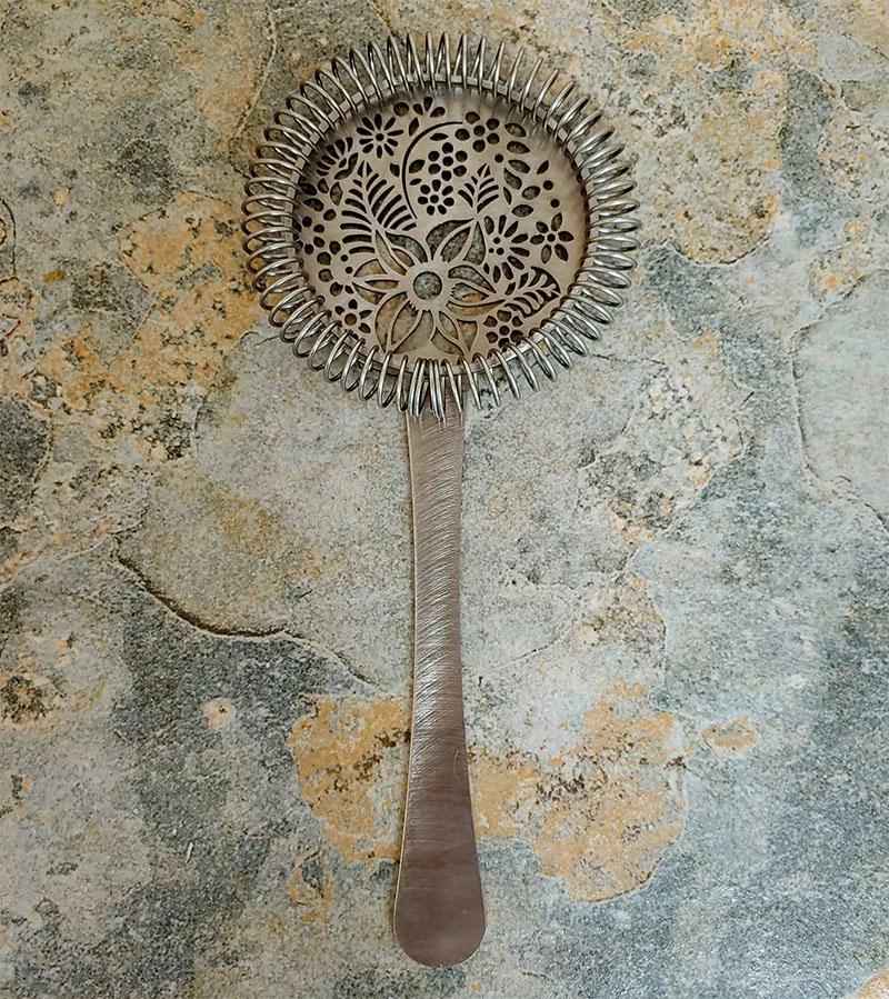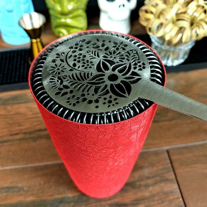 This beautiful and unique cocktail strainer with the a Botanical Floral Design is perfect for any bartender looking for high quality bar tools. It is a classic style hawthorne-strainer with an exclusive pattern on the working surface. It is made of very high quality stainless steel and is quite a bit heavier then your standard bar strainer. The new spring embedding system also ensures a tight fit to the edges of the mixing vessel. Professional and home bartenders will love using this unique bar tool to craft up all types of delicious cocktails! Show your guests and customers “You’re a touch above the rest” with this unique high quality strainer.
