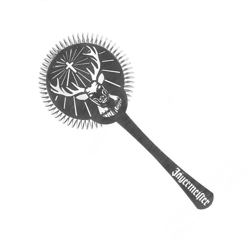 This beautiful and unique cocktail strainer with the Jager Design is perfect for any bartender looking for high quality bar tools. It is a classic style with an exclusive pattern on the working surface. It is made of very high quality stainless steel and is quite a bit heavier then your standard bar strainer. The new spring embedding system also ensures a tight fit to the edges of the mixing vessel. Professional and home bartenders will love using this unique bar tool to craft up all types of delicious cocktails! Show your guests and customers “You’re a touch above the rest” with this unique high quality strainer.