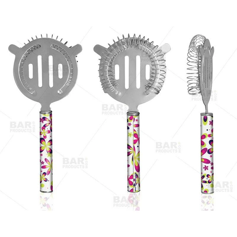 Thiscute floral themed designer cocktail strainer adds a touch of style and color to your bartending showmanship. Pair it with other matching bar tools for the perfect bar set. Bartending is a lot about the personality you have backing your skills, let this designer strainer help add to that!