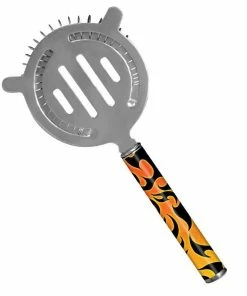 This orange flames themed designer cocktail strainer adds a touch of style and color to your bartending showmanship. Pair it with other matching bar tools for the perfect bar set. Bartending is a lot about the personality you have backing your skills, let this designer strainer help add to that!