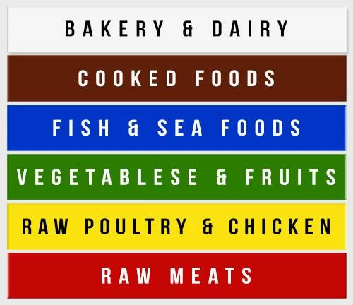 - Different color cutting boards for different food groups.