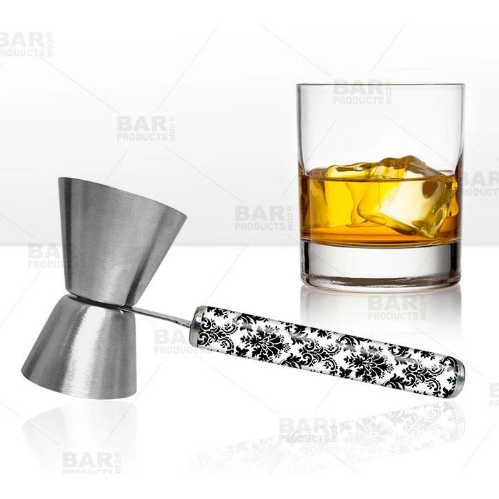 Easy to clean and durable, this sanitary handled jigger is growing in popularity. Bartenders, as well as home bar enthusiasts are loving the utility it offers. Now with this fun Damask design, you can add some personality to your drink mixing showmanship.