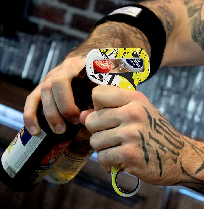 Designed on our Hammerhead™ style openers, these hardcore, grungy football themed openers are the perfect arsenal for slinging beers to those thirsty fanatics.