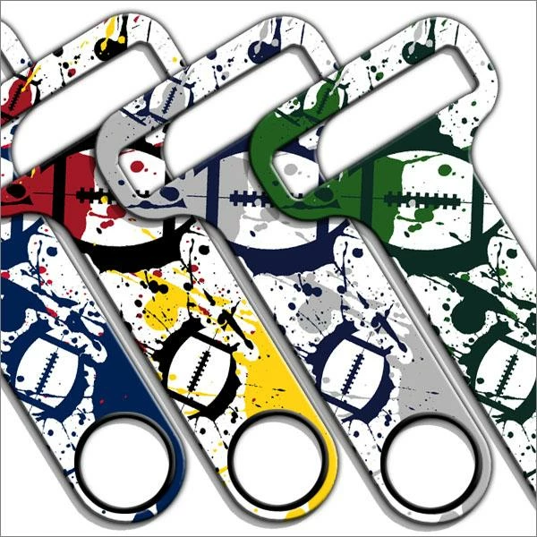 During football season, your local bar is the place to be. The TV’s are set to show the games, fans are getting psyched and team jerseys are spotted throughout. Add to the vibe and represent your favorite team with these custom football bottle openers, representing 32 different team colors.