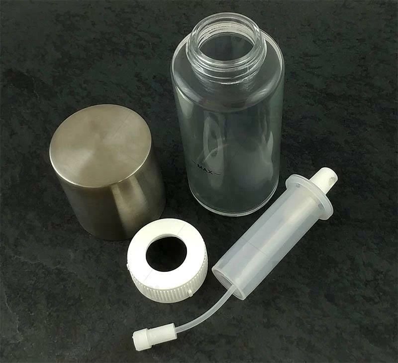 Simply pump the brushed stainless steel cap a few times to pressurize and enjoy the fine mist that is generated. To be sure to produce an even spray, fill only to the indicated “MAX” line and do not tip the bottle upside down. All parts are dishwasher safe (top rack) and are BPA-free