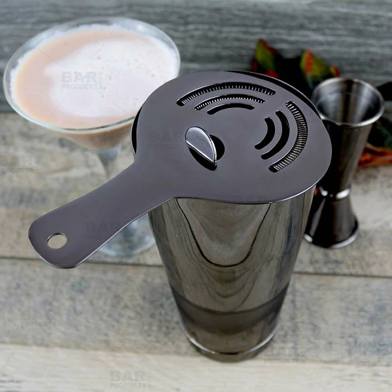 Choosing the right cocktail strainer to suit your mixology needs can be overwhelming with all of the different options out there. Which is why this industry standard hawthorne strainer should definitely be considered. The professional stainless steel design with stunning, reflective gun metal plating is highly functional, long lasting and simply beautiful. The enhanced tight coils of this cocktail strainer will perfectly strain ice and other particles from your liquid libations while it is designed to fit all standard mixing tins and glasses. Not to mention, gun metal plated bar tools are highly trending in the bar industry these days. Not Dishwasher Safe.