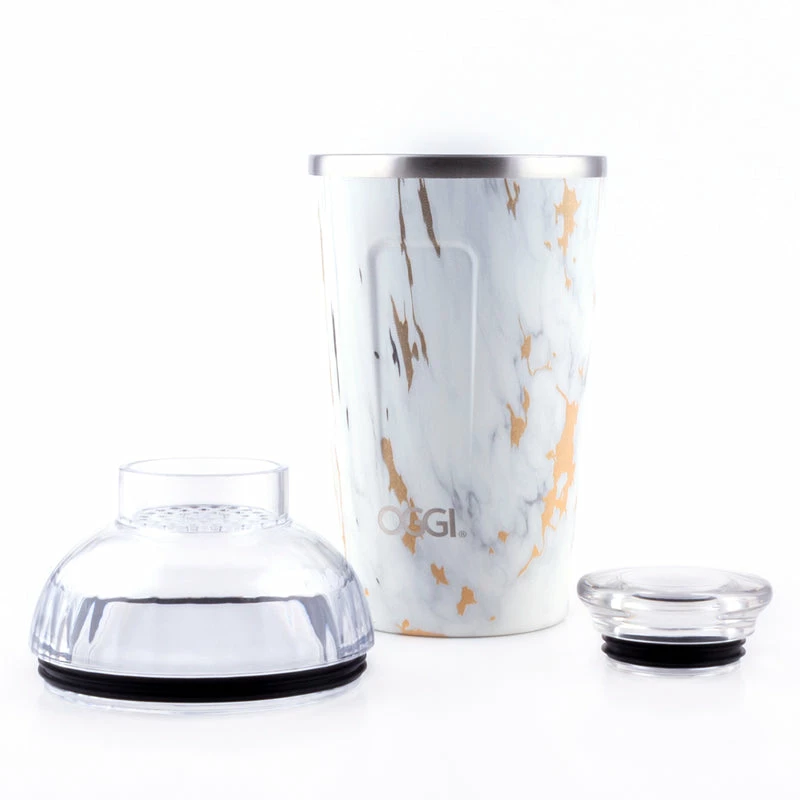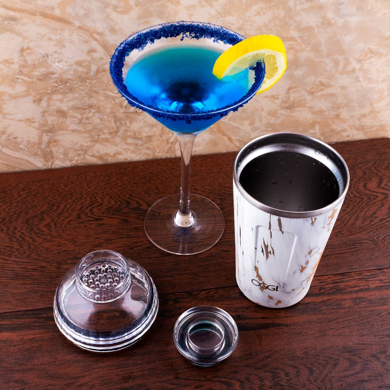 This shaker is bound to be the the most essential bartending piece in your home bar or restaurant. It features a marble design that is printed all around the shaker. It has a double wall insulation allows your cocktail’s and ice to stay cold for longer and it also allows the outside to not get cold. This shaker comes with an easy to remove drip proof lid w/ silicon gasket to prevent messes and includes a built in strainer.ย