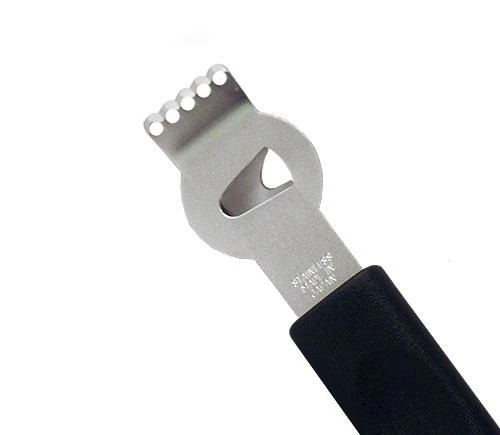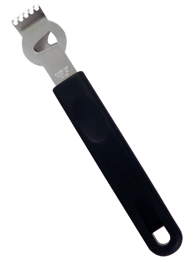 Finish a delicious drink off with a fancy curl as decoration. The lemon zester and stripper is the ideal tool for peeling and zesting heavy-skinned fruits and vegetables like lemons, limes, oranges, or grapefruits. The quality stainless steel with it’s strong plastic black handle is so easy to use and will make beautiful garnishes!