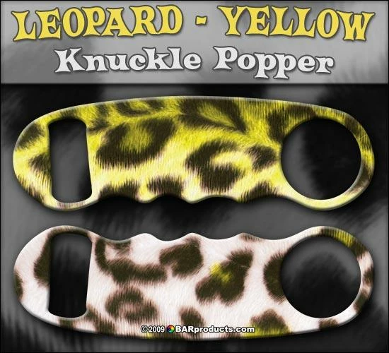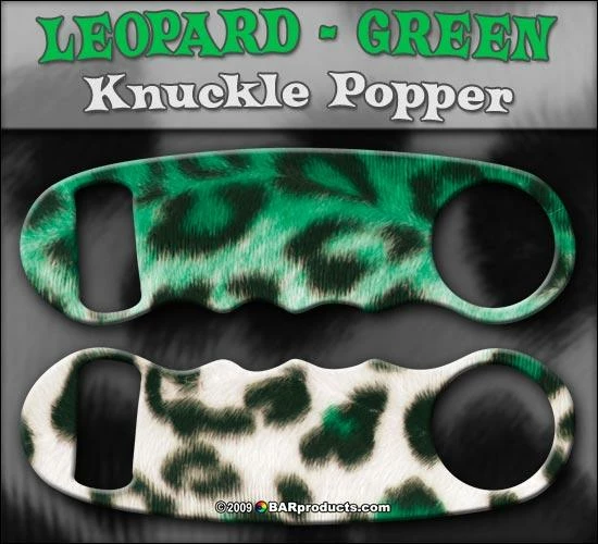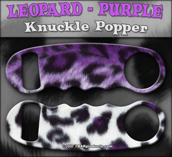 Our Knuckle Popper Kolorcoat™ bottle openers are mid-sized bar tools featuring colorful designs on the whole surface. Each sport a curved side and finger indentations on the other for easy operation. They’re small enough to fit easily in a pocket or can hang stylishly from your keychain or a lanyard.