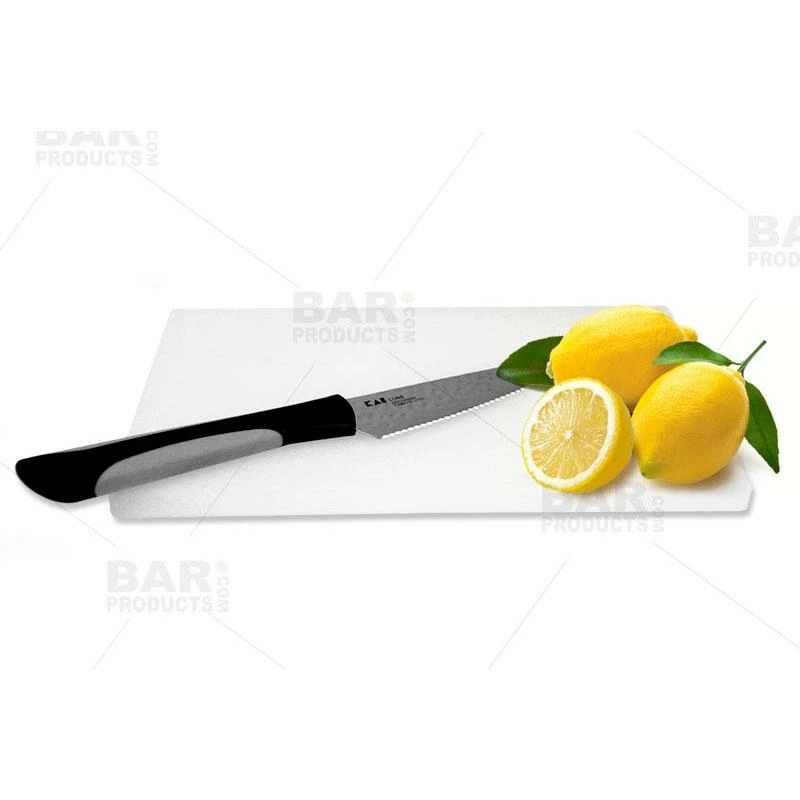 If you are looking for the most ideal way to slice up your citrus fruits, such as limes, lemons, oranges and grapefruits, then you will love what the Luna Knife offers! This knife has been designed to be a handy addition in your kitchen or behind the bar. The small serrations on the blade will easily cut through the tough skins known to citrus fruits.It also works beautifully when cutting around the membranes between grapefruit segments, and for lemon or lime peels creating a citrus twist to accent a wide variety of craft cocktails.