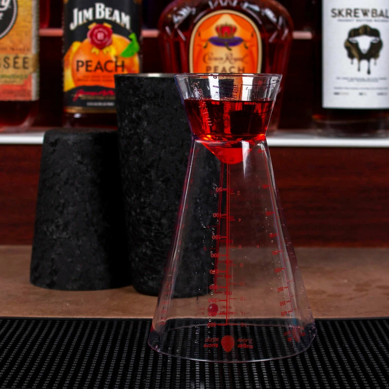 This measuring tool is a must-have for making cocktails.ย The bigger end has a max measurement of 16 fluid ounces and the smaller end has a max measurement of 2 ounces.ย It is made of durable plastics and features a wide variety of measuring options for different ingredients.ย This measuring tool stands 7″ in height.