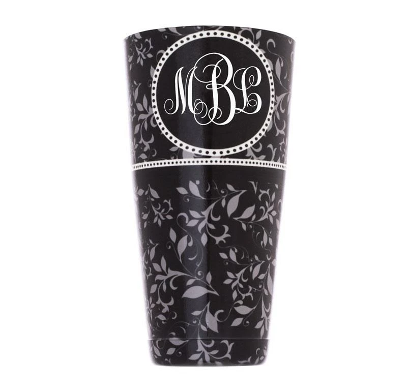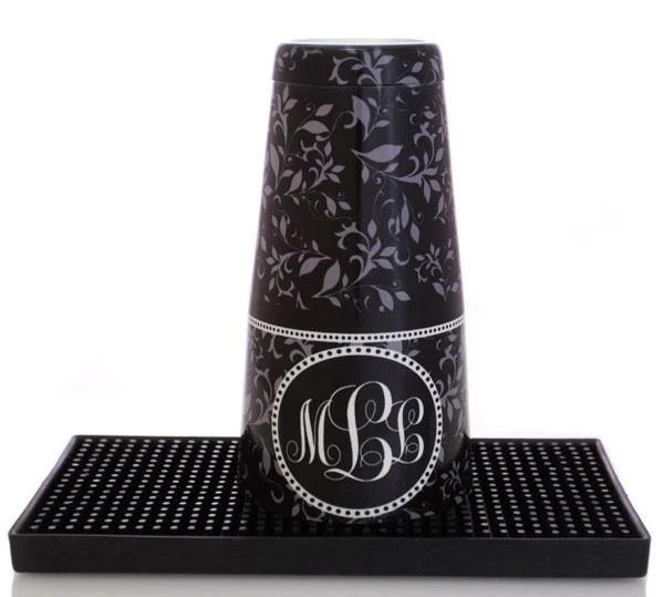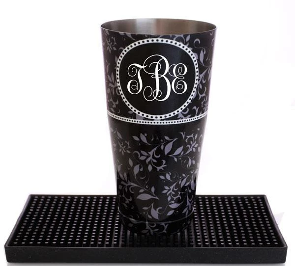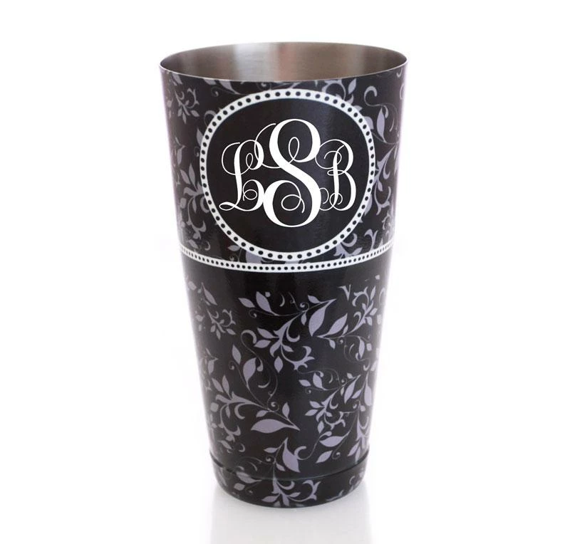 The Gray Swirls Monogram shaker features a classic design that is elegant and beautiful. You can customize this shaker with any 1, 2, or 3 Letter Monogram of your choice. Just leave the fields blank if you only want 1 or 2 letters. We will adjust the design so it still looks great! The full wrap around this shaker makes it unique, and adding your initials makes it truly one of a kind! Shaker tins make great gifts for home and professional bartenders.