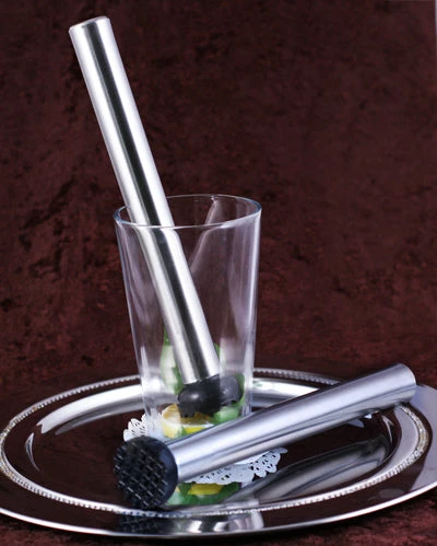 This 9.6″ Stainless Steel Muddler features a black plastic tenderizer head that allows you to mash and crush fruits, herbs, mint, and/or spices in the bottom of a glass to release the flavors.