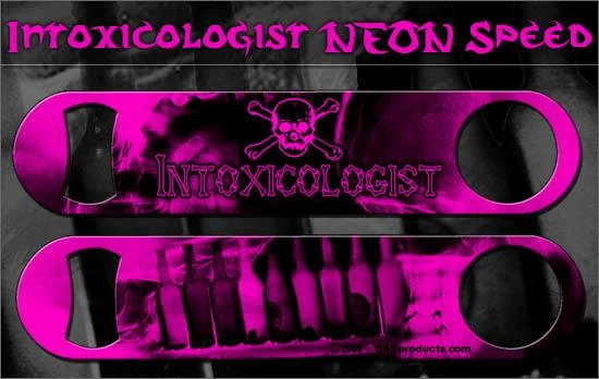 The intoxicologist branding, plus vibrant neon colors, equals much awesomeness! Check out the different neon openers we offer our cool intox design on.