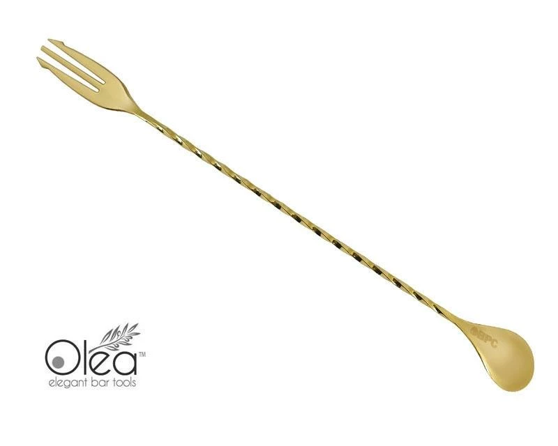 “Absolutely stunning” are the perfect words to describe this gorgeous Gold Plated “Trident” Fork Tip Bar Spoon. One of the first editions to our line of Olea™ Elegant Bar Tools, this bar spoon is every master mixologists and professional bartenders dream bar tool. This high quality piece is constructed from a durable stainless steel material and then beautifully plated with a reflective Gold finish.