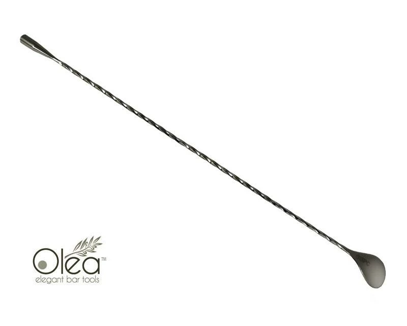This bar spoon measures 40 centimeters from the teardrop shaped weighted tip, and then twists down the handle (for ultimate control and grip) to the spoon head. The weighted tip offers an amazing control element when in use, allowing the momentum to aid you in the stirring process. Bar spoons are used in many modern mixology recipes. They are commonly used to stir delicate spirits, being careful not to water them down by vigorously shaking and preserving the robust flavors. Bar Spoons also act as the perfect layering tool. If style and class are things you like to incorporate into your mixology skills, then this exquisite Gunmetal plated bar spoon is perfect to add to your bar tool lineup. Not Dishwasher Safe.