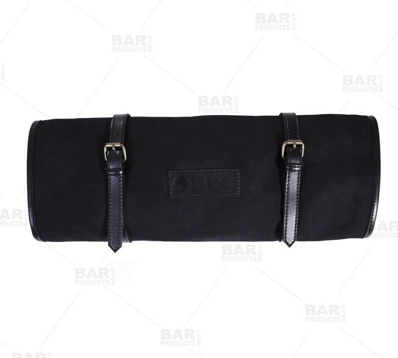 Store and transport your bar tools in style with this beautiful Olea™ Barware Tool Roll. It features plenty of pocket spaces that can be used for a versatile range of tools from ice picks to bar spoons. It also features two strong elastic bands to hold tools securely. You get function and style with this carrying tool roll. It is ideal for traveling mixologist or just bartenders that like to keep their tools protected and organized when they aren’t using them. Not Dishwasher Safe.