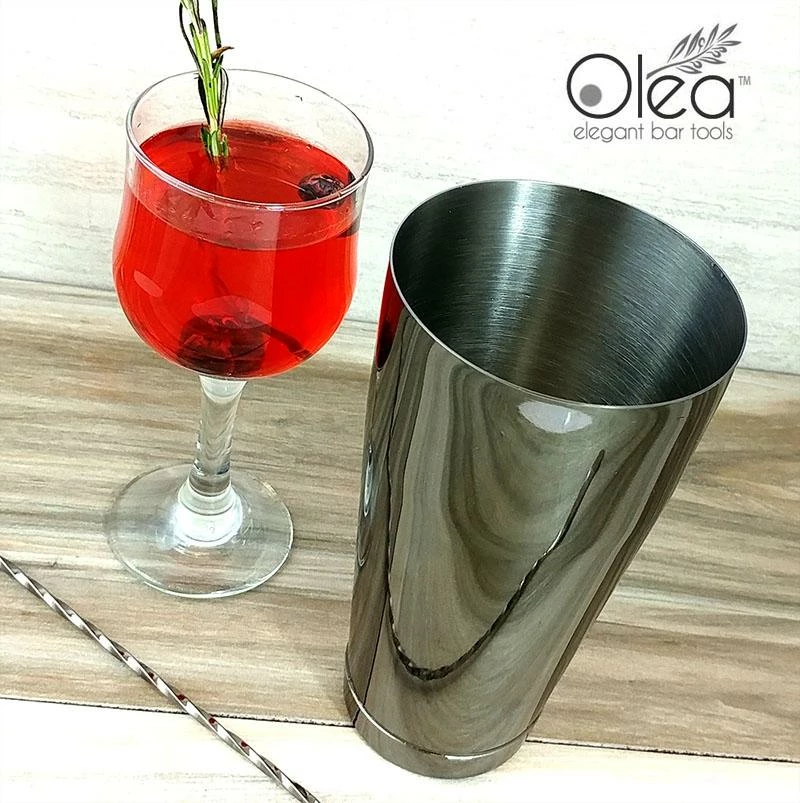 A stunning twist on a classic bar tool. This elegant Gunmetal Plated Cocktail Shaker Tin will start getting you excited to shake up your favorite spirits in style. One of the first editions to our line of Olea™ Elegant Bar Tools, this 28 ounce shaker tin is every master mixologists and professional bartenders dream bar tool. This high quality piece is constructed from a durable stainless steel material and then beautifully plated with a reflective black finish.