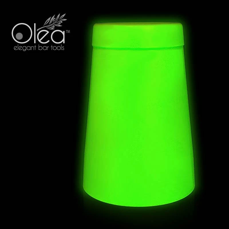 This fun metallic lime green cocktail shaker tin will surely get you excited to shake up your favorite spirits in style. This 16 ounce shaker tin is every master mixologists and professional bartenders dream bar tool. The high quality piece is constructed from a durable stainless steel material and then beautifully coated with a metallic lime green finish. This cocktail shaker is also neon and glows brilliantly under a black light environment!