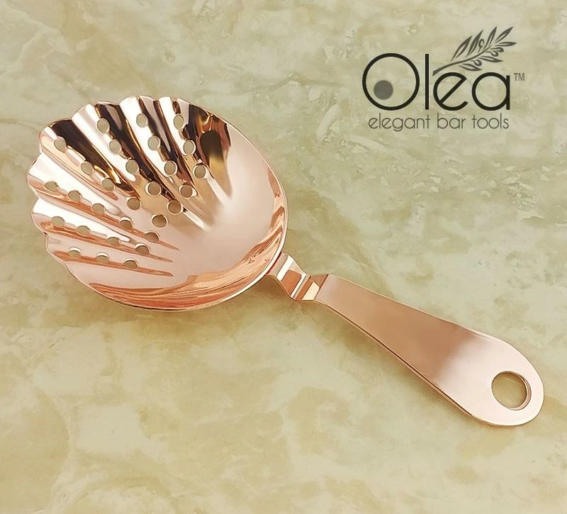 “Absolutely stunning” are the perfect words to describe this gorgeous Copper Plated Shell Julep Strainer. One of the first editions to our line of Olea™ Elegant Bar Tools, this cocktail strainer is every master mixologists and professional bartenders dream bar tool. This high quality piece is constructed from a durable stainless steel material and then beautifully plated with a reflective copper finish.