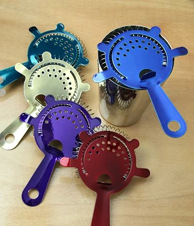 The bar tools of the trade are part of the most common set of accessories used by all bartenders. Used with large to medium and large cocktail shakers (a.k.a. tins, cheater tins, boston shakers) and mixing glasses, theyโre used to keep ice strained while pouring chilled cocktails and liquors while providing a steady flow. Made from stainless steel with a colored powder coated shiny finish and easy to operate, theyโre the favorites of professionals as well as beginners.