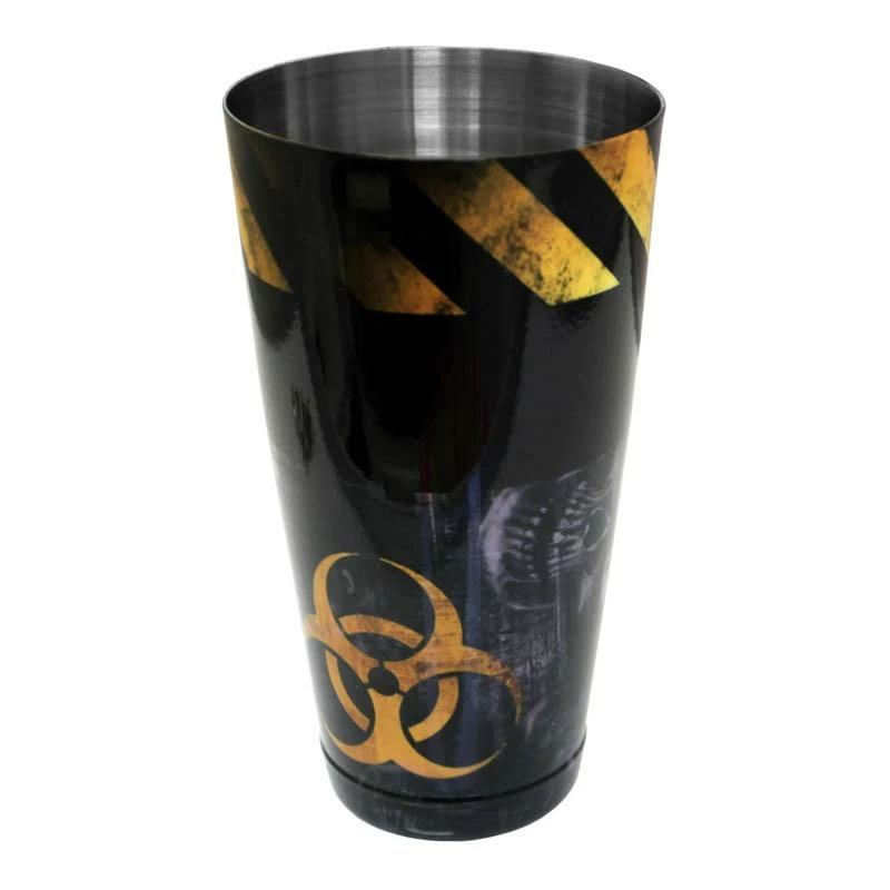 From the company who has brought you these popular shakers in an array of colors and textures, we are extremely excited to be able to offer you these custom printed shaker tin designs. Exclusive to BarSupplies.com, you will not be able to find these babies anywhere else. Still maintaining the professional features of the standard shaker, we added a colorful, cool and fun element to it. Stand out among other bartenders and sport this Grungy Hazard shaker tin design!